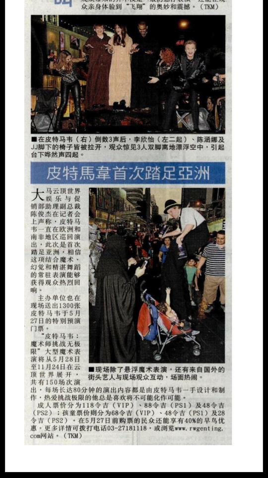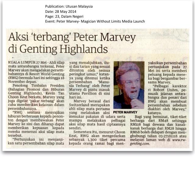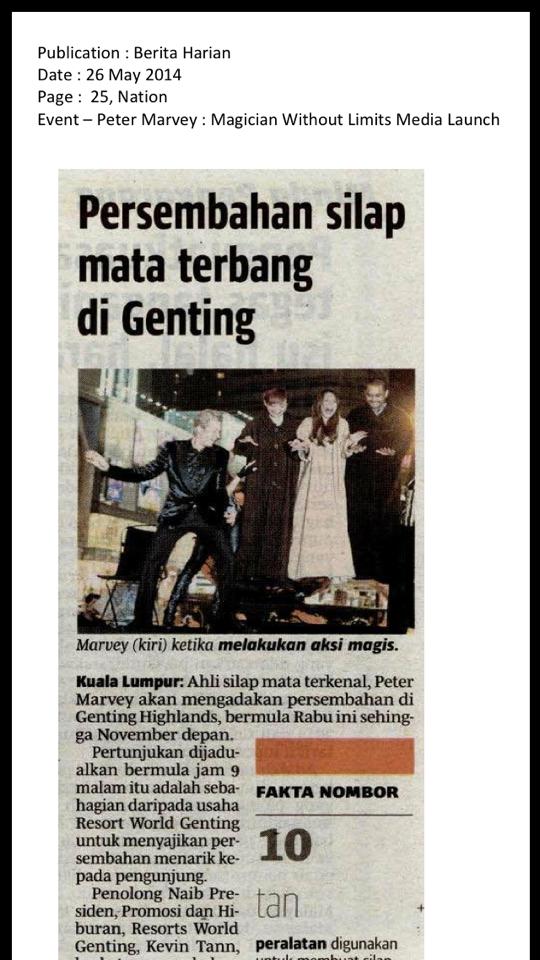 The whole performance by Peter Marvey is definitely a wonder to behold. Be sure to catch this critically acclaimed magic show in Malaysia – the “Magician Without Limits” LIVE at the Genting International Showroom in Resorts World Genting, Malaysia.