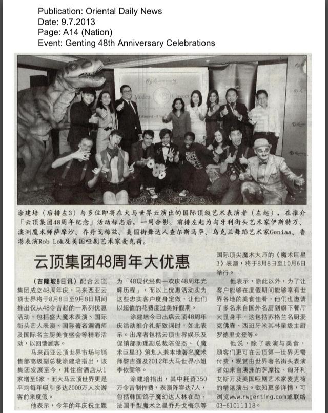 In conjunction with Resorts World Genting’s 48th anniversary celebrations, we are proud to present to you another magical moment up at the peak – Superstars of Magic 3! This time we have new magicians all set to amaze you with their spectacular world-class acts. Prepare to laugh at their antics while their illusions leave you speechless once again as your brain tries to make sense of their tricks happening right in front of your very eyes. Don’t miss out on this chance to experience for yourself an amazing magic fiesta like none other!